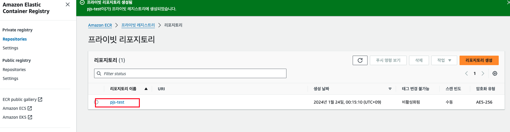 • AWS Management Console을 통해 AWS ECR Registry 생성