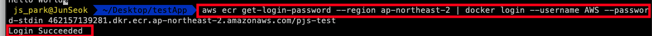• Local-PC에서 생성된 AWS ECR로의 로그인 수행