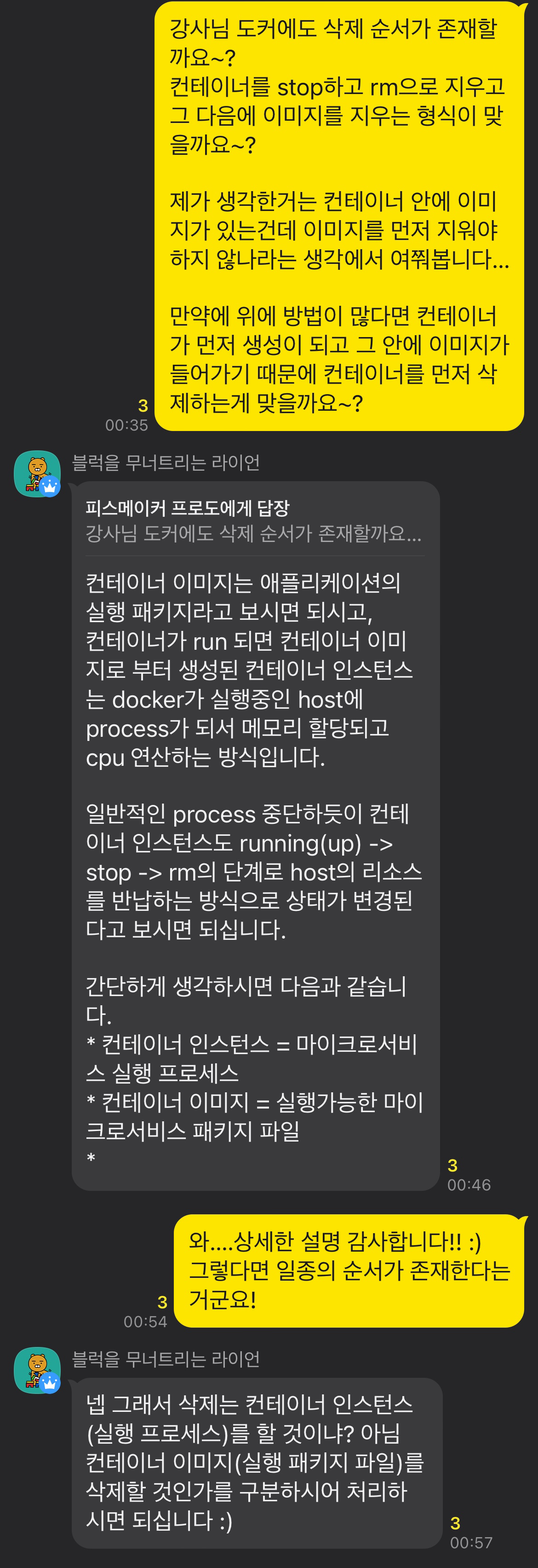 컨테이너를 stop하고 rm으로 지우고 그 다음에 이미지를 지우는 형식이 맞을까요~?