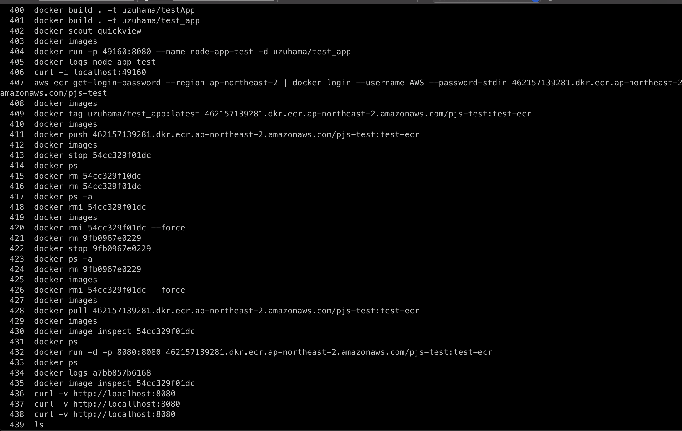 위 히스토리에서 문제점은 rm, stop, rmi 이 명령어에서 오류가 발생했다.