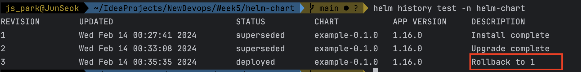 - Helm Chart 릴리즈 Rollback 수행후 결과 확인