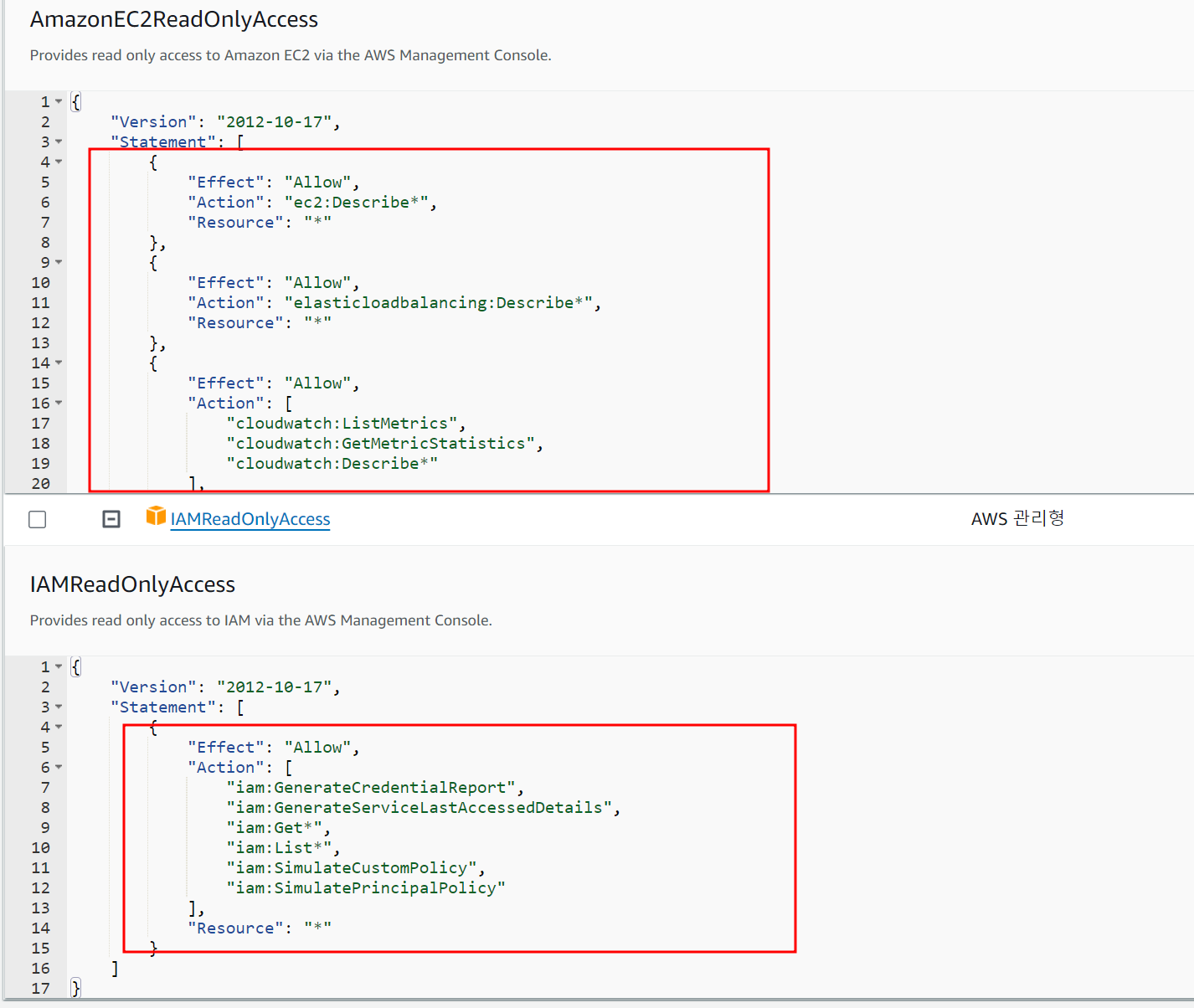 IAMReadOnlyAccess 👉 IAM 서비스를 읽을 수 있는 권한
