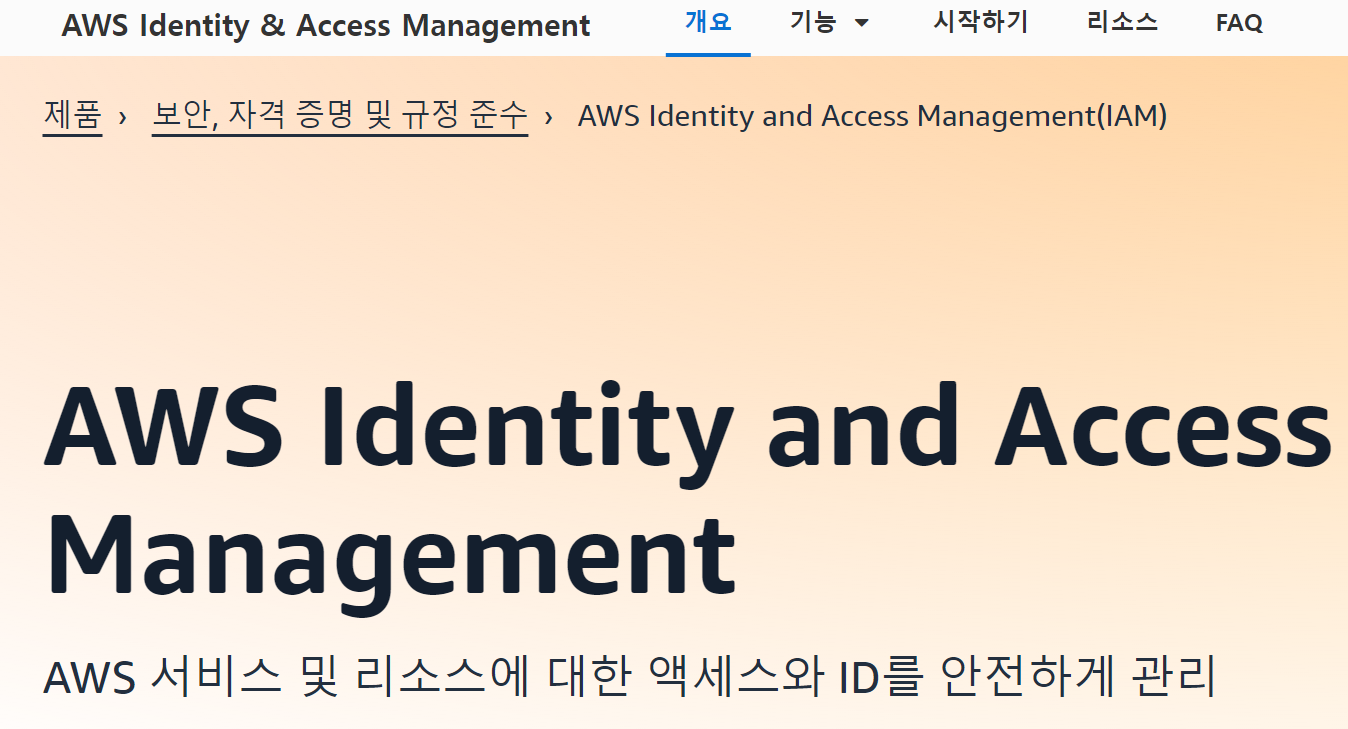 위 이미지에서 볼 수 있듯이 IAM 자체가 보안,자격 증명, 규정준수 카테고리에 포함되어 있고, 리소스에 대한 액세스/ID 안전하게 관리이다.
