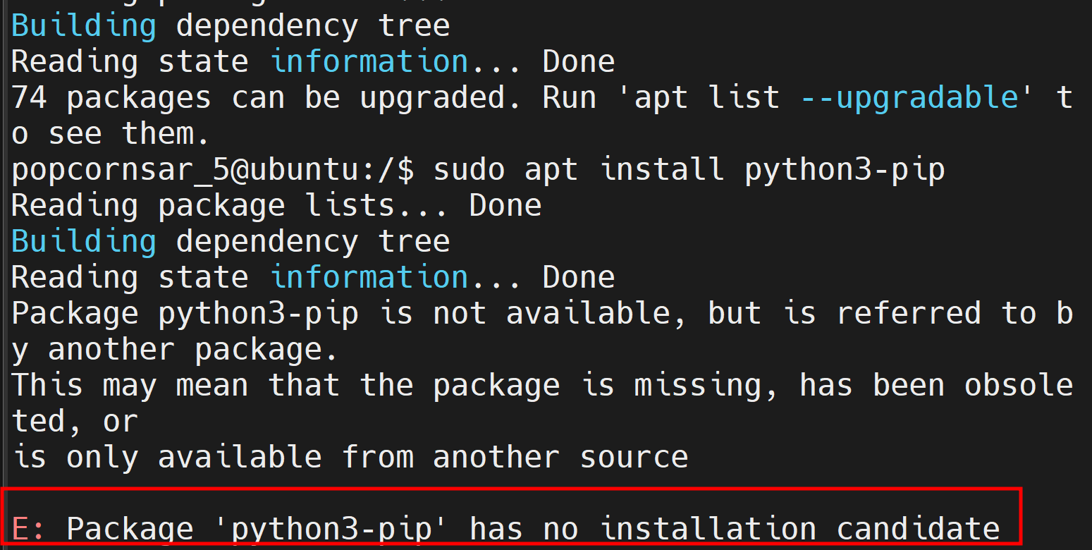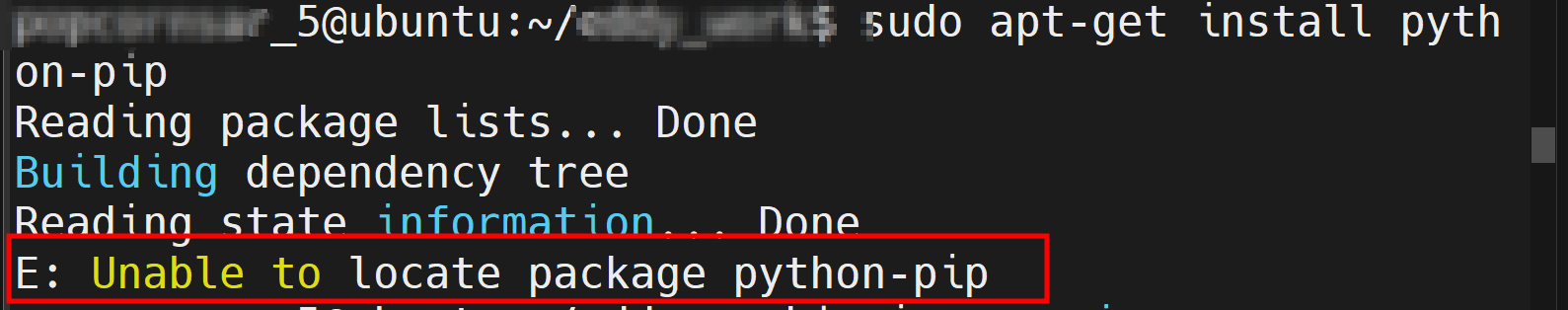 Ubuntu에서는 python3-pip가 Universe 리포지토리에 포함되어 있을 수 있습니다. Universe 리포지토리가 활성화되어 있는지 확인하고 활성화하는 방법은 다음과 같습니다: