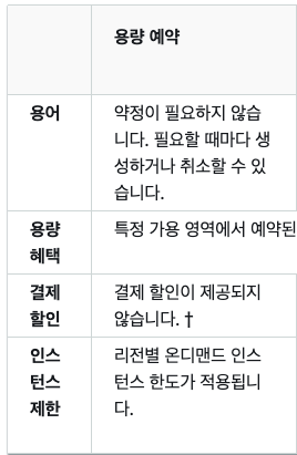 해당 솔루션의 가장 큰 단점이 존재한다! 할인X, 예약 시, 예약한 만큼의 용량 과금이 발생!