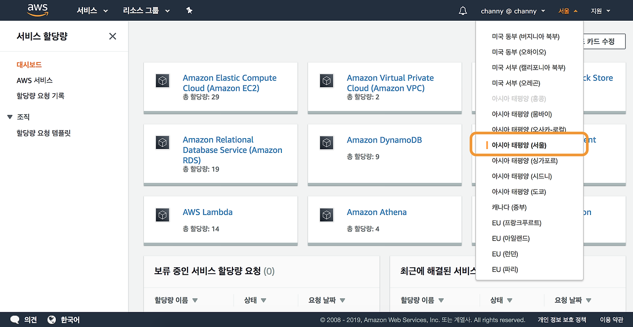 AWS는 기분적으로 리전(Region) 개념이 존재하는데,