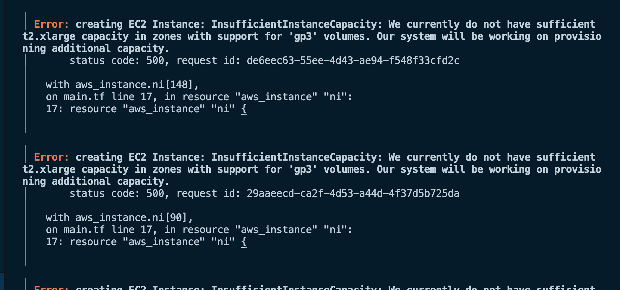 최근에 Terraform으로 약 200개의 EC2를 한번에 생성하다가 62개까지 생성 후, 생성하지 않는 오류가 발생했다.