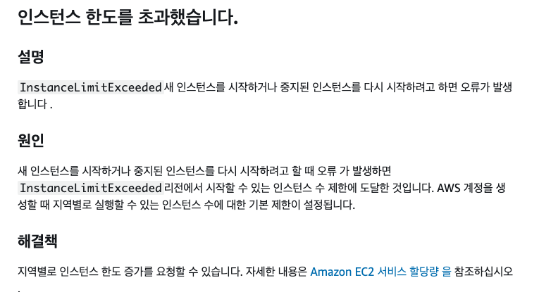 AWS 계정마다 지역별로 생성 할 수 있는 인스턴스 수가 제한이 된다.