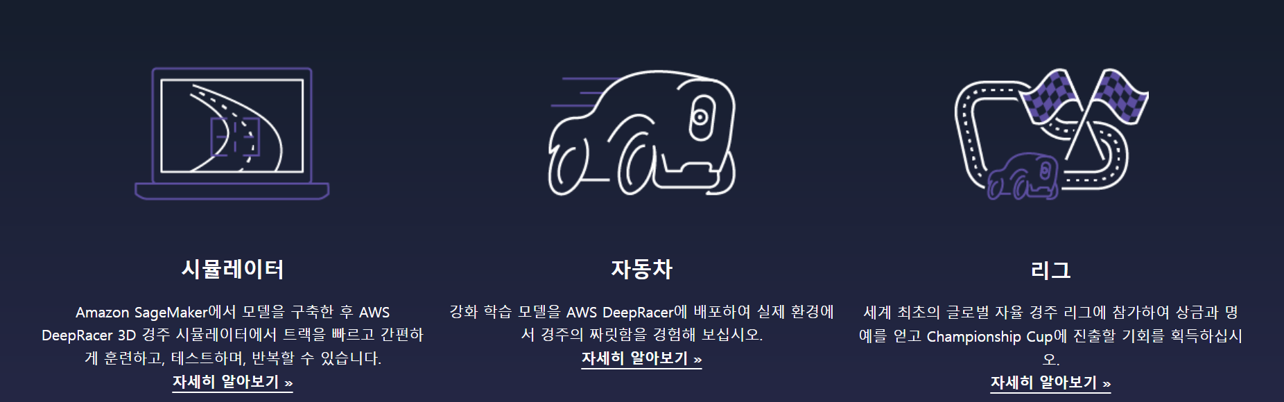 결국, DeepRacer는 클라우드 기반의 시뮬레이터 및 머신러닝 강화 학습기를 제공함과 동시에, 해당 훈련 모델을 실제 모형 자동차에 탑재시켜 오프라인으로 대회를 개최하고 운영이 가능하다.