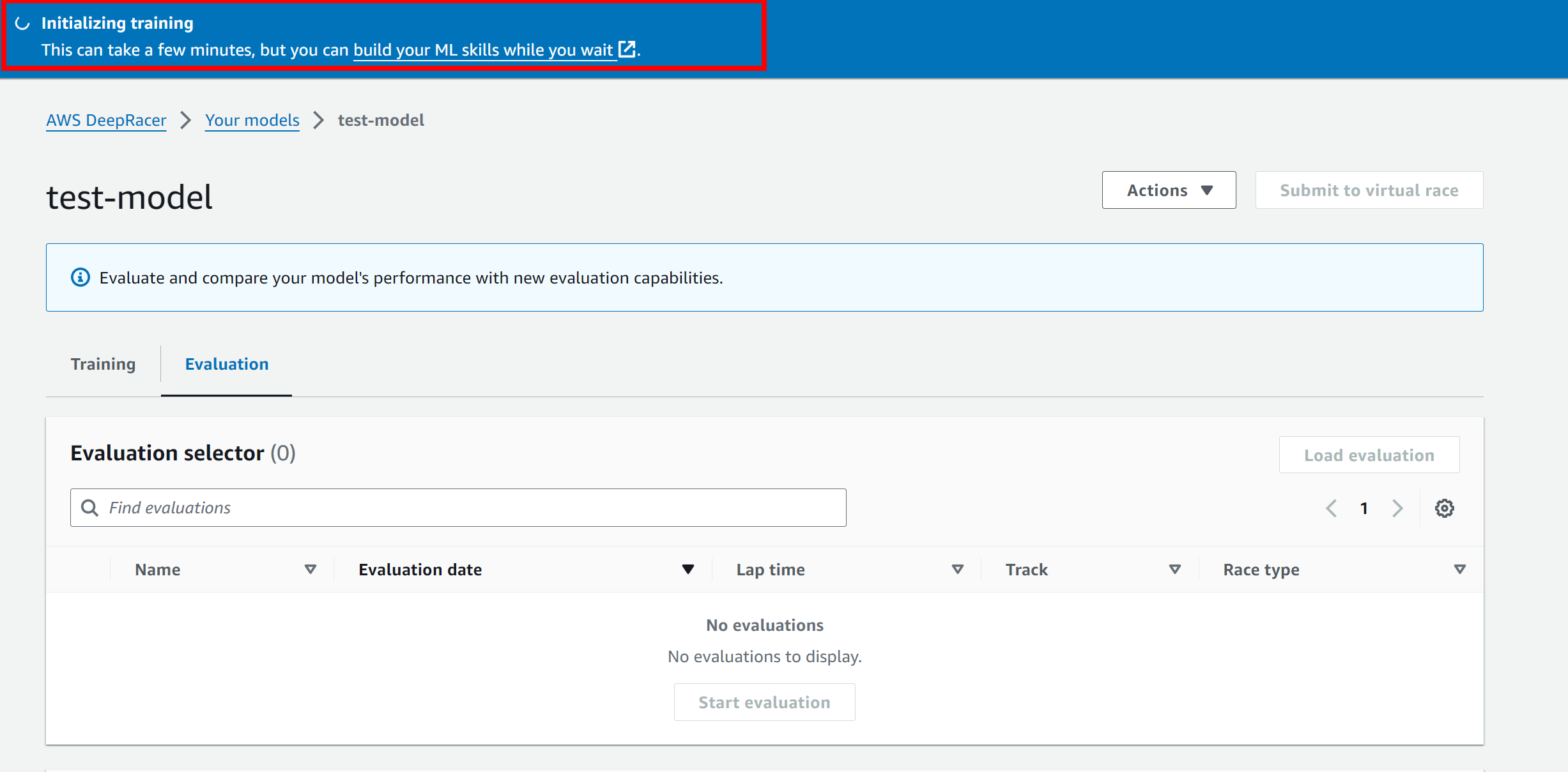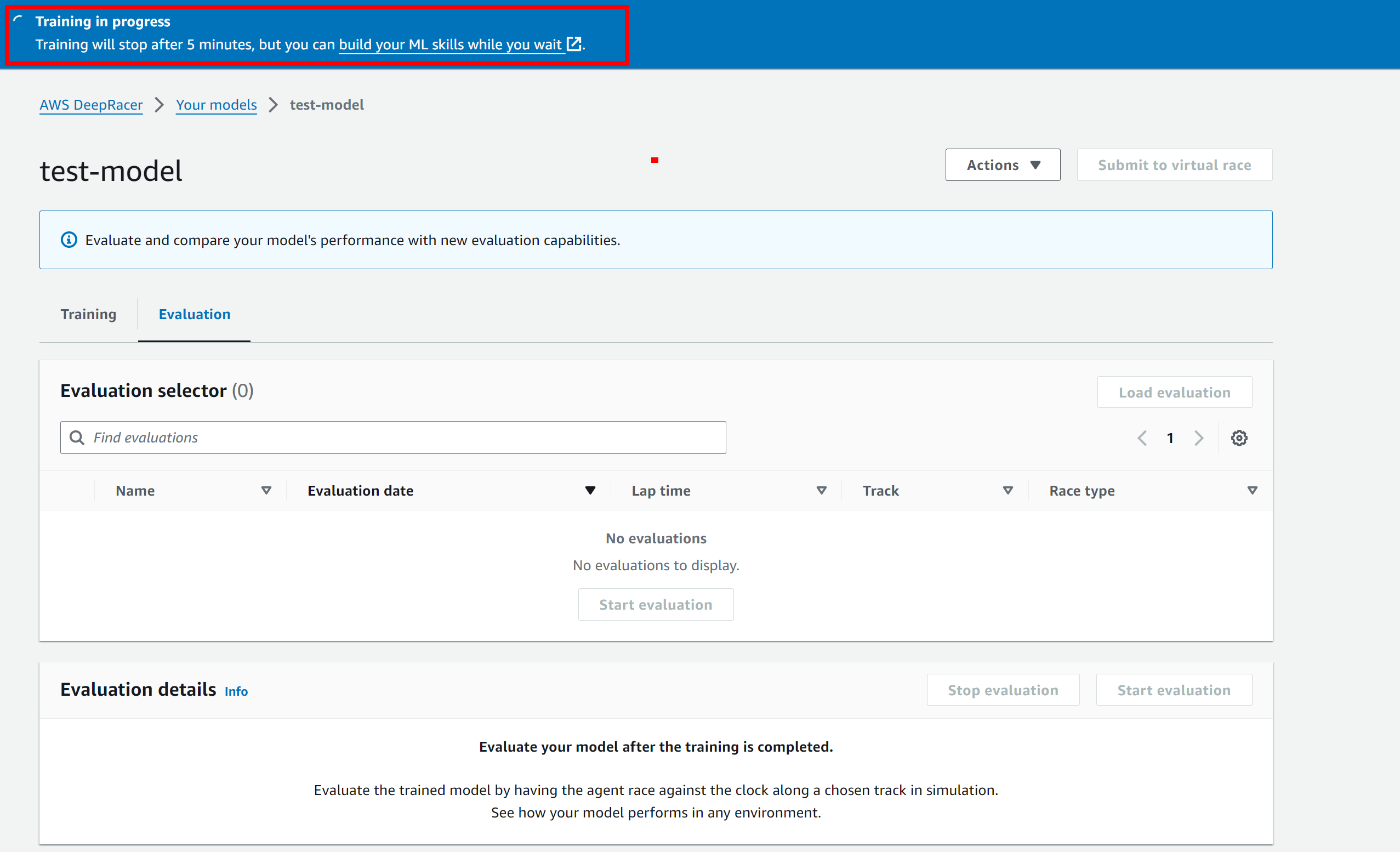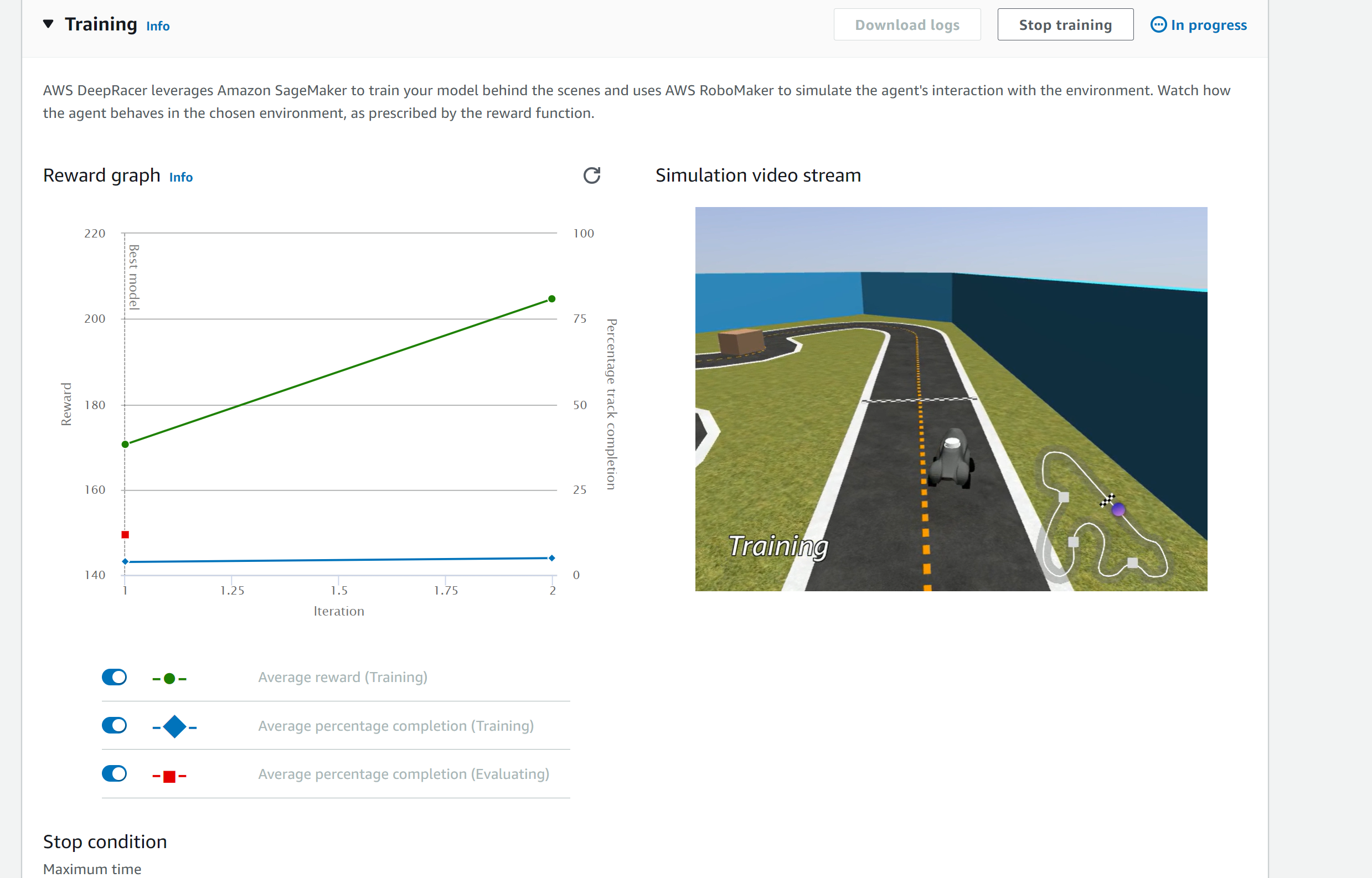 내가 설정한 값으로 DeepRacer model이 학습을 진행하고 학습진행을 동영상으로 볼 수 있다.