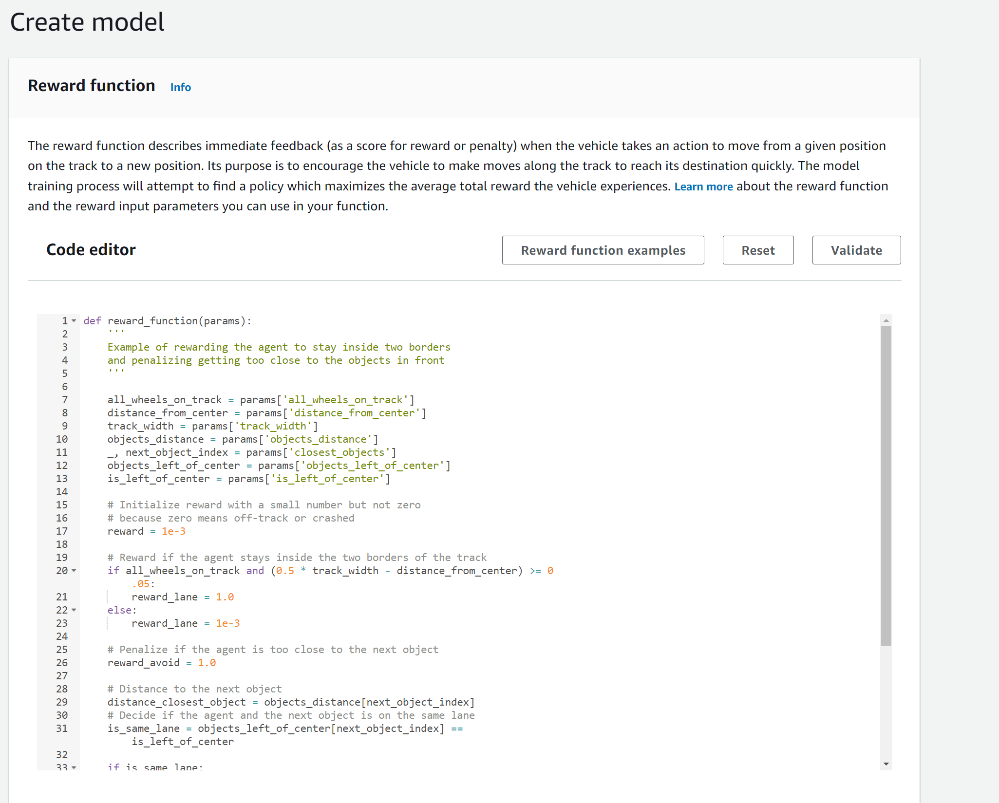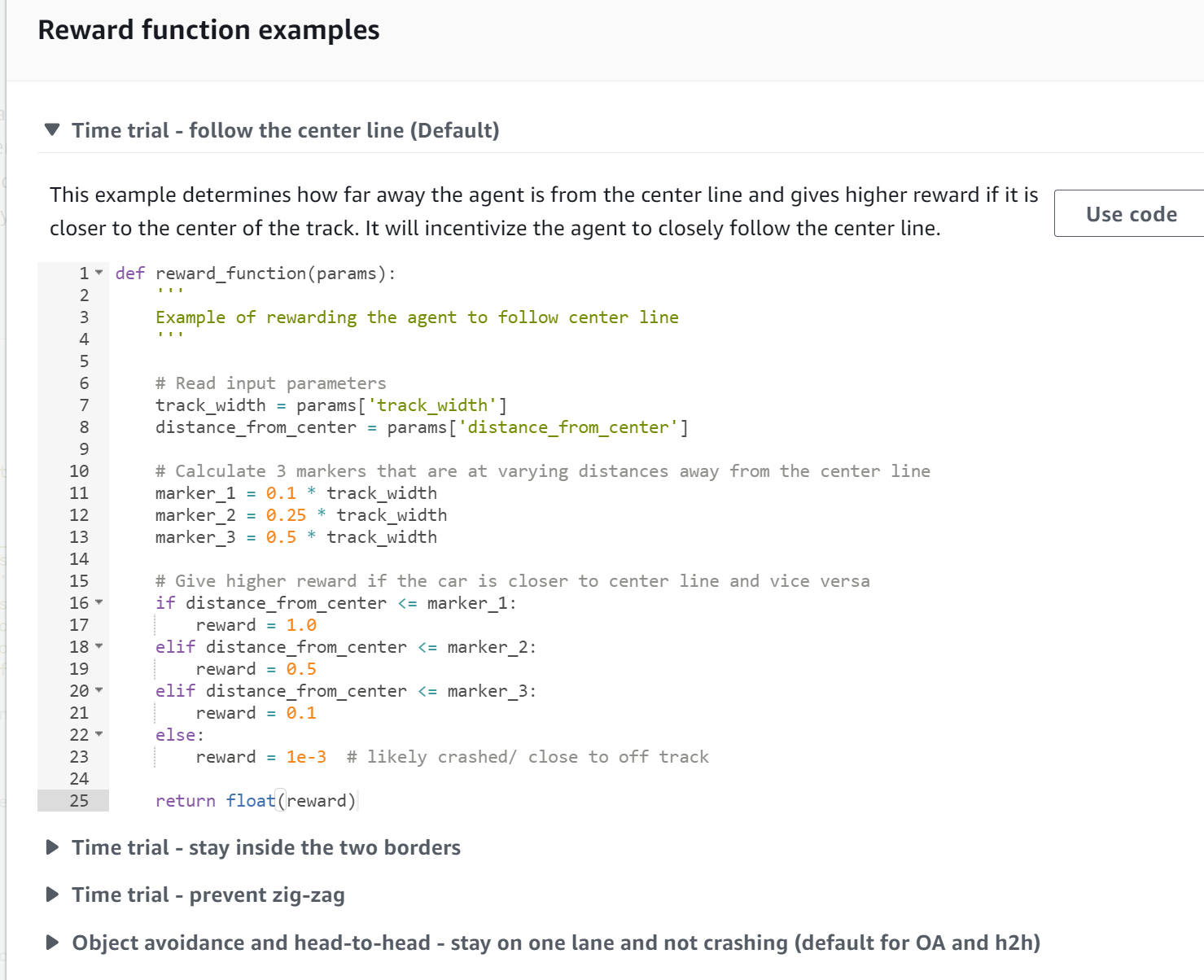AWS에서는 기본적으로 보상함수를 예시를 제공해준다.