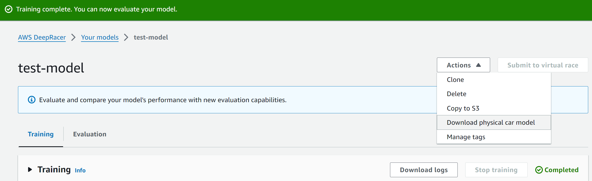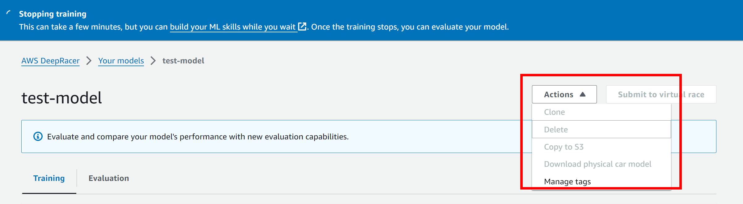 모델의 학습과 평가가 종료되면 그림과 같이 S3복사하기, 복사, 삭제가 가능하다.