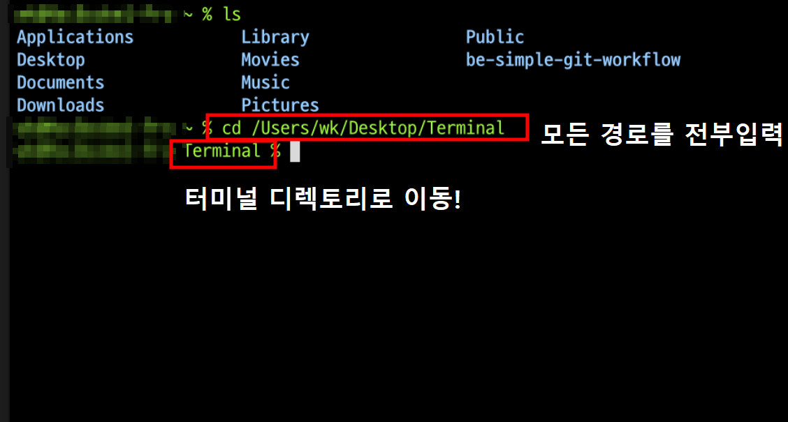 - 최상위 디렉토리(/)부터 이동할 디렉토리까지 전체 경로를 입력하는 방법